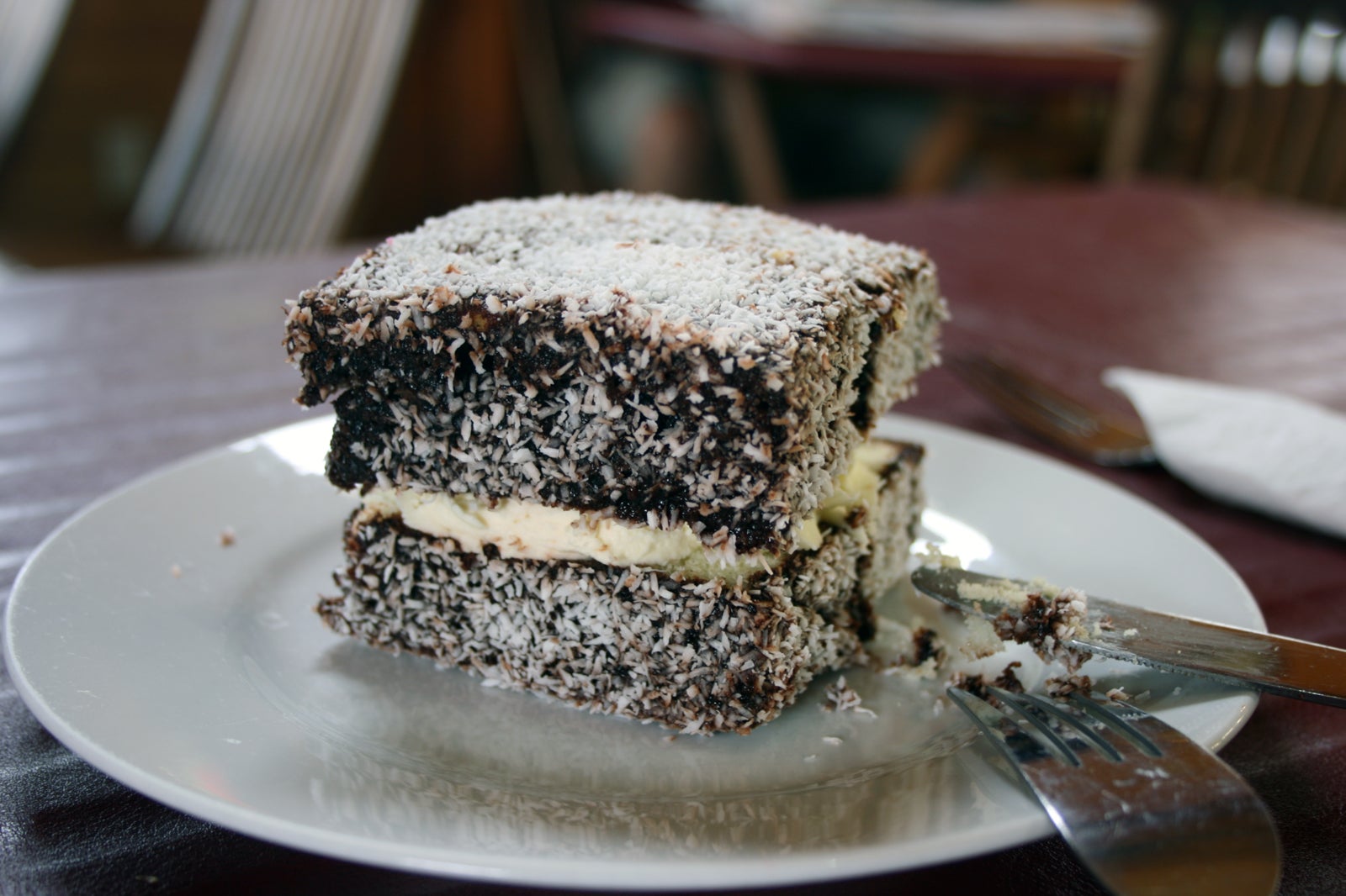 A beloved local delicacy that’s considered to be the national cake by many, the lamington is a moist, sweet square of sponge cake that’s soaked in rich chocolate sauce and rolled in flaky coconut.